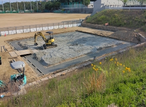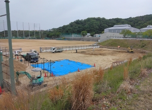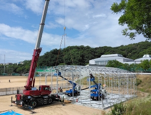 2025年8月に神戸高専グラウンド敷地内に新設した施設「ロボット製作場」の工事記録写真(一部)です。