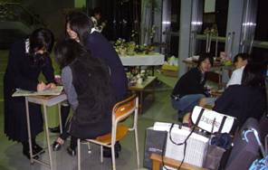 ![]() 1つ70センチの花ビラを何枚作った(?) 玉井部長,歴代の木本・小林・西村・池田部長を中心に,男女部員15名がよく頑張ったと思います。 <高専祭のクラブ校長賞の受賞年度> 1987(S62)年度 1994(H6)年度 1997(H9)年度 2004(H16)年度 2008(H20)年度 連続2009(H21)年度 高専祭前夜 準備中 段ボールの中に一年の成果が