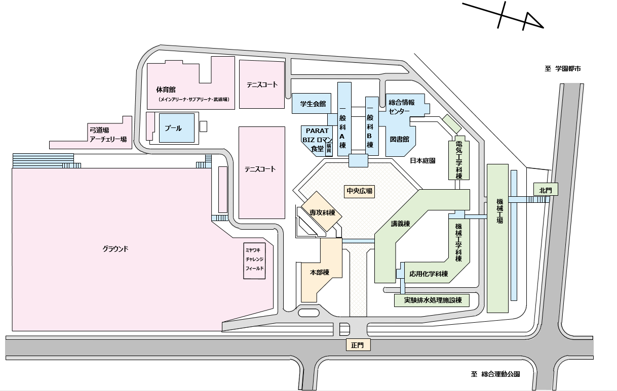 神戸高専のキャンパスを4つのエリアに分けて紹介しています。