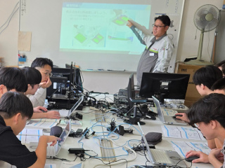 学生は皆さん各班ごとに力を合わせてプログラムを作成して、シミュレータでの動作確認も行った上で、実機を動かすところまでをしっかりとやりきってくれました。(成長産業技術者教育プログラム(ロボット分野) 清水 俊彦、小澤 正宜、酒井 昌彦、佐藤 徹哉、尾山 匡浩、田原 熙昻)