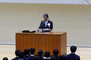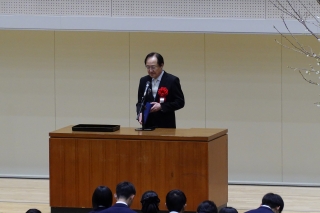 本校卒業生である益一哉・産業技術総合研究所 量子・AI融合技術ビジネス開発グローバル研究センター長(前・東京工業大学長)からも、新入生に向けて祝辞を頂戴しました。
