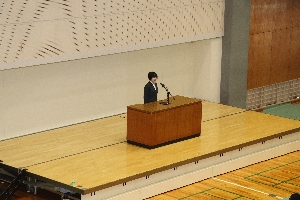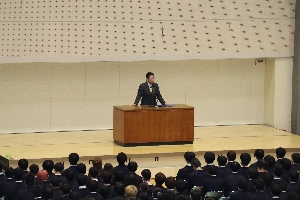 新任教員7名の紹介と挨拶のあと、始業式が行われ、校長、教務主事、学生主事からの講話がありました。(広報室)