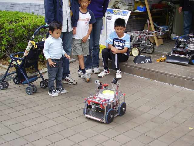 レスキューロボットの実演! ハリキッテ(?)女の子にソーラーカーの説明