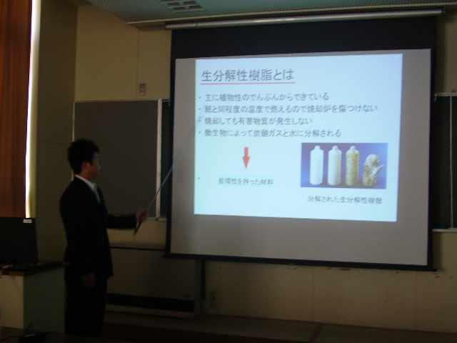各テーマごとのレポート提出や口頭試問を義務付けて基本的なデータ処理能力,技術文書作成能力,コミュニケーション能力が修得できるよう細やかに指導します。また,企業見学を通して実際の現場に触れ,学習の深化をはかり、近い将来に企業等において書くことであろう”報告書”を書く際の基本を学びます。