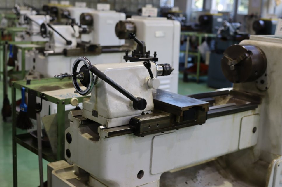 1~2年生では機械製作における作業を実習,体験することにより,加工の原理,方法,加工条件と加工現象,精度の関係などについて理解します。機械工作の基本作業(旋盤,フライス盤,研削盤,鋳造,溶接,NCフライス盤,分解組立)を行うことにより,各種加工法について,また工具の名称,用途などを学べます。また,電気実習では基本作業を中心にハンダ付け,各種測定器具の使用方法を学びます。