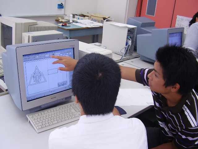 機械工学科の全体説明 学生がCAD製図をレクチャー