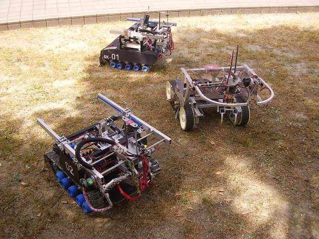 レスキューロボットの紹介(保護者も参加しています) ロボットも暑さに参った、、木陰で休憩