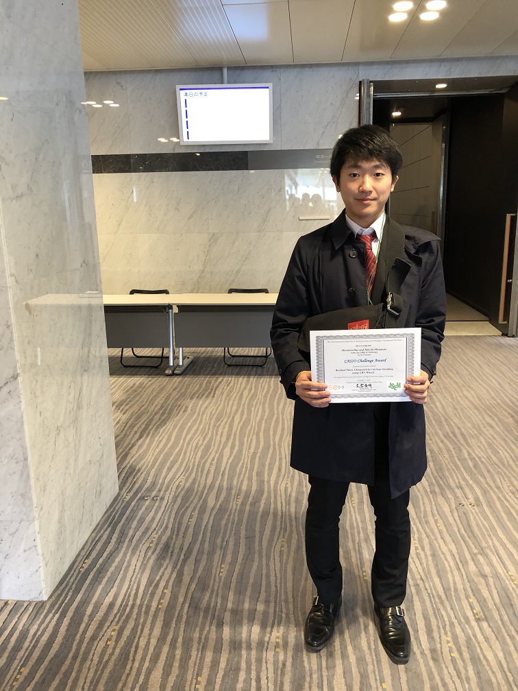 機械システム工学専攻の学生は研究が評価され学会で表彰を受けています