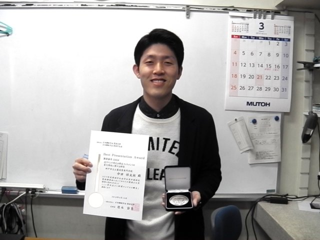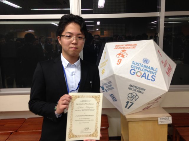 2019/11/8~9に開催された [4rd STI-Gigaku(2019)] (International Conference of"Science of Technology Innovation" 2018)にて機械システム工学専攻2年の魚崎海さんがベストポスター賞を受賞しました。 研究内容のレベルの高さと魚崎くんの英語力の高さが評価されました。他大学の大学院生も参加する国際会議でのベストポスター賞です。素晴らしい発表でした。おめでとう!(2019年11月)。