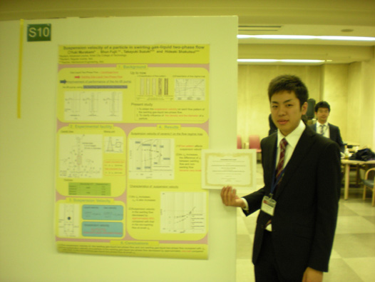 11月4-7日に京都(龍谷大学)で開催された国際会議「5th ISEM'10 」 (International Symposium on Advanced Science and Technology in Experimental Mechanics)のポスターセッションにおいて、機械システム工学専攻1年の村上さんが、優秀賞を受賞しました(2010年11月)。