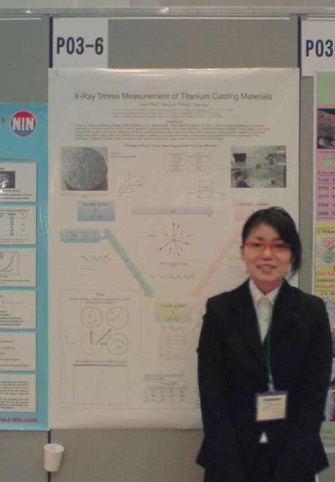 城:機械学会の関西支部の発表で大阪産業大学にいきました。あとは京都国際会館でのチタンの国際会議にポスター(セッション)発表をしてきたのと、インドネシアであったX線、中性子のセミナーにポスター発表で参加したのと、中国のハルピン工業大学にX線に関して徳島大学と一緒に行ってきました。これはオーラルセッション(口頭発表)でした。