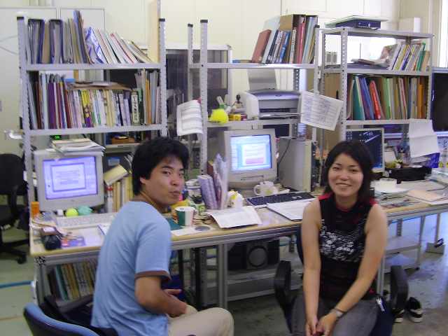 研究室にて(左:専攻科生 渡辺君) ピースV(^-^)v!