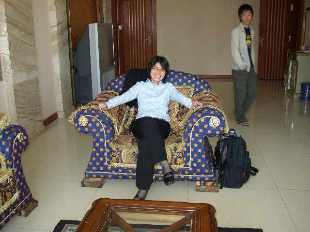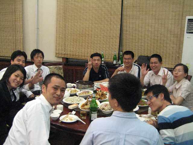 発表が終わって一安心(?)それとも女王様気分 懇親会にて(ハルピン工業大学)