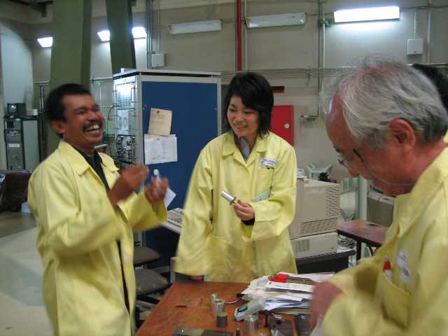 そこではセミナーと並行して実験が行われて、西田先生と、西田先生の恩師の先生である英先生が主に理論や測定方法の話をされていました。先生方に比べたらほとんど理論が理解できていない私からすれば、測定ぐらいしかできることがなくて…。そこにインドネシアの研究者の方も加わって、ディスカッション(議論)されているのを見ながら、この(集団の)中に入って、一緒にディスカッションできたらいいな~って思いました。なんというか、身近に理想の世界があるって感じです。当然(中学、高専本科の当時は)考えてもいない(想像もしていない)世界だったんですけどね。