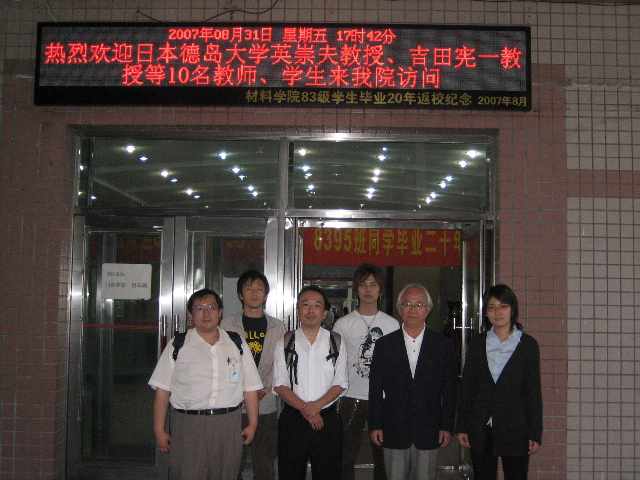 (電光掲示板に) 熱烈歓迎!! ハルピン工業大学にて記念撮影