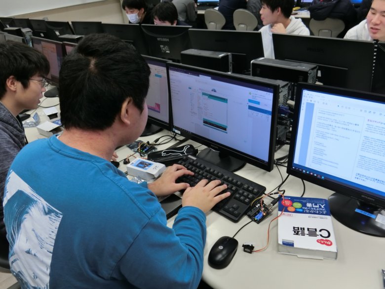 ロボット基礎実習Ⅰa~知能ロボット工学概論 ものづくりの作業。やっぱりつくる作業があると眠くならないし、楽しい。概論では基礎実習でつくっているものの仕組みの説明も。